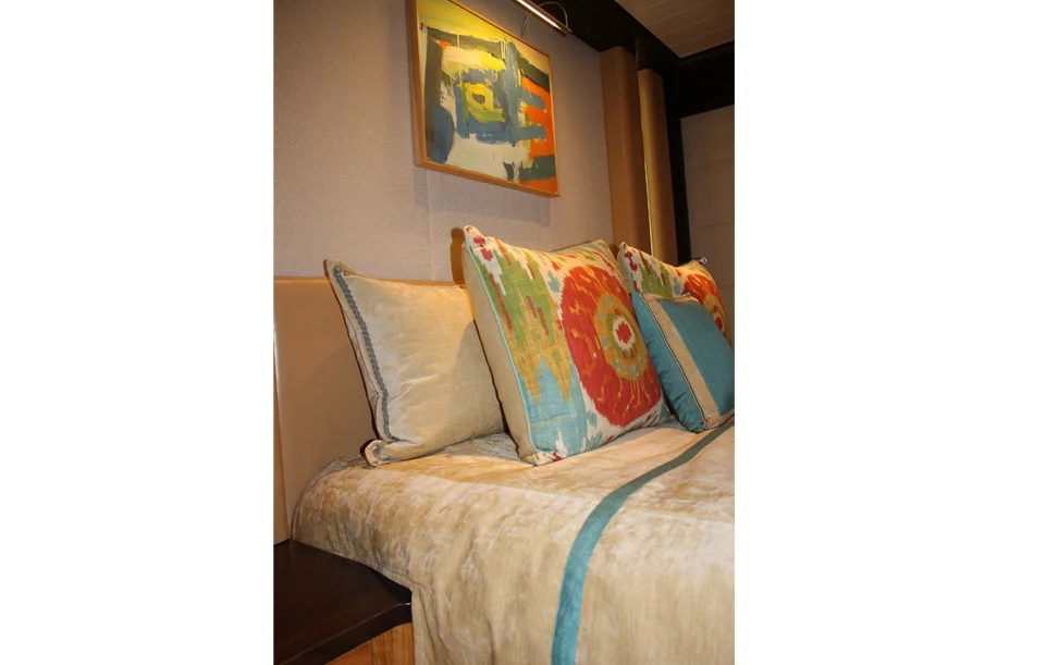 Local to Clear Yacht Interior’s home base, M/Y TATS was docked at the famous Dennis Conner’s North Cove Marina in New York City where her refit was ongoing. Our work encompassed the redesign of the main salon and dining area, replacement of all soft goods in four staterooms, the fit out of all dining cabinetry and exterior furniture and seating updates.